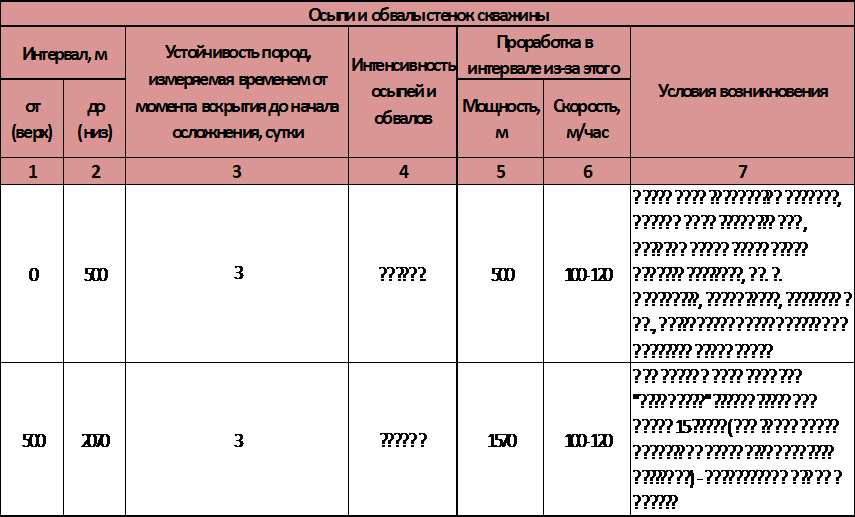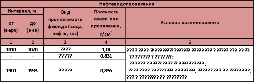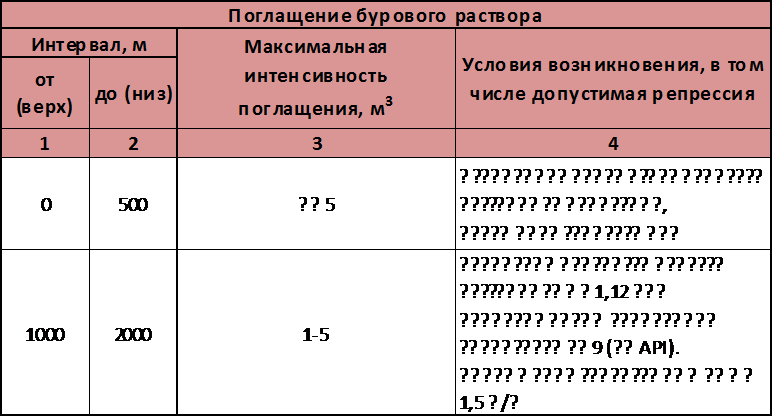 Для заданных в таблице «Давление по разрезу скважины» пластового давления и глубин плотность буровых растворов должна находиться в пределах: