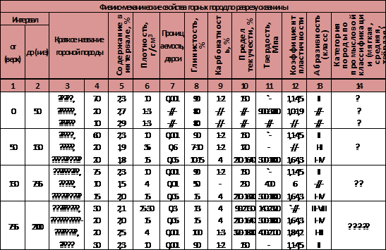 плотностей горных пород, приведенные в таблице «Физико-механические свойства