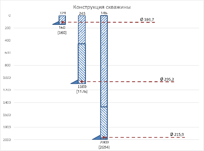 В соответствии с заданием на проектирование конструкция скважины должна обеспечить конструкцию забоя в виде фильтра из труб 146 мм длиной около 300 м, расположенного в пласте-коллекторе на глубине по вертикали 2000 м.