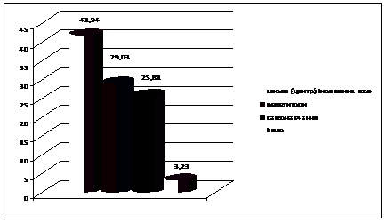 школа (центр) іноземних мов - 26 відповідей (41,94%);