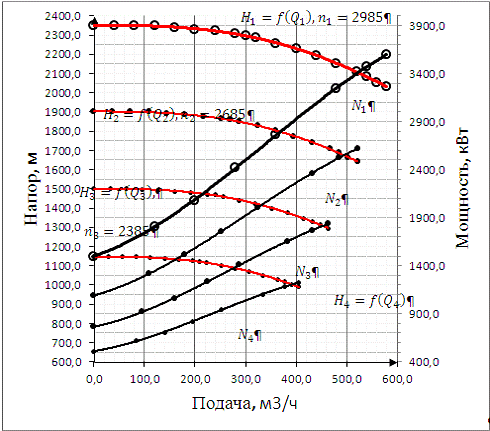 характеристику насоса при этой частоте. Затем, складывая расходы при