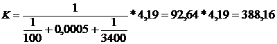 Коэффициент теплопередачи получается равным