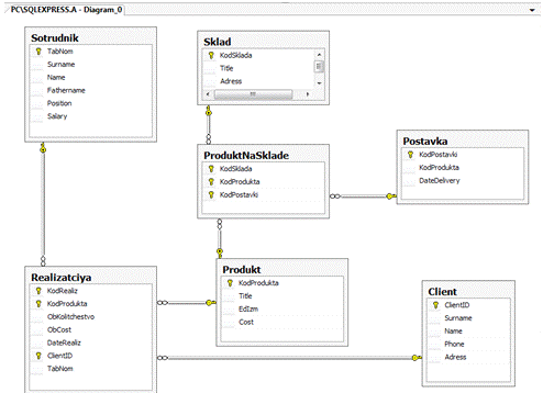 Склад - хранит - Продукт;
