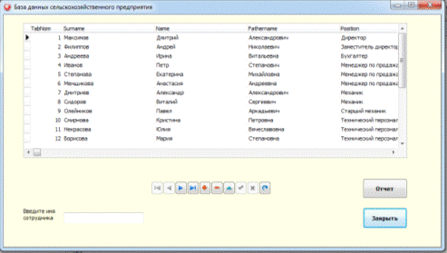 функция быстрого поиска по таблице «Сотрудник». Для более удобной работы,