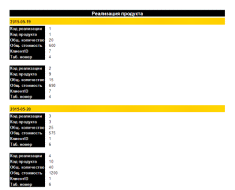 Рисунок 11 - Отчет по таблице «Реализация»