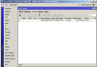 Во вкладке Leases, отображаются арендованные IP адреса, мас адреса хостов арендовавших их и другая полезная информация.