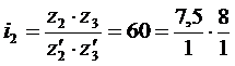 отношение i2=60 можно осуществить двумя парами колёс с близкими