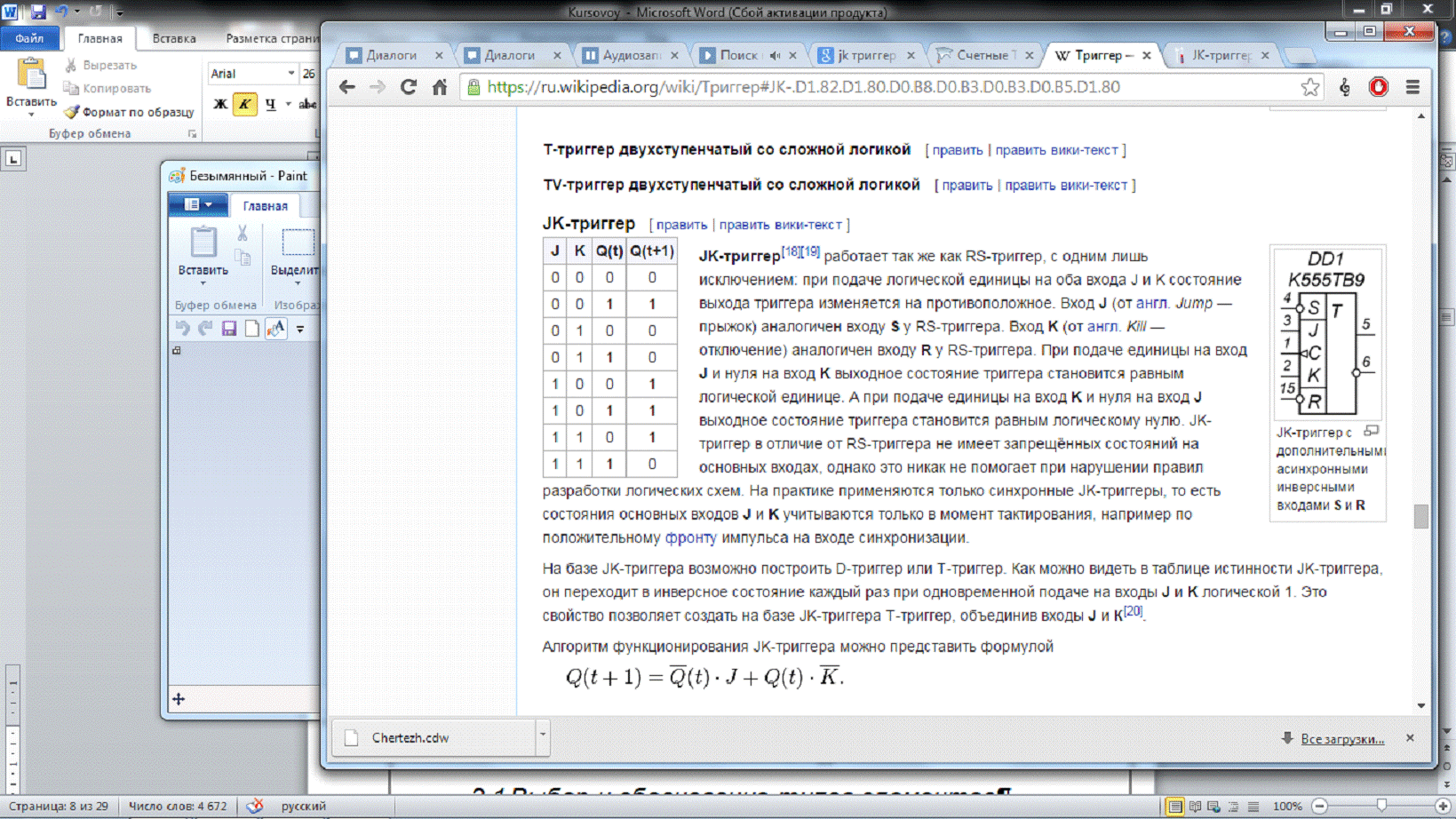 или Т-триггер. Как можно видеть в таблице истинности JK-триггера, он переходит