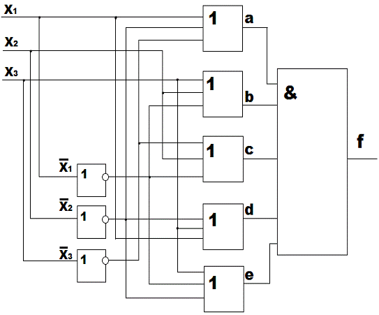 Структурная схема комбинационной логической цепи, соответствующая заданной функции (формула 1.27), показана на рисунке 1.1.