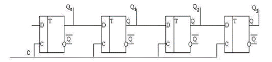 выход предыдущего разряда соединён со входом «D» последующего, каждый тактовый