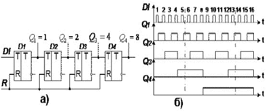 счётчика (а) и временные диаграммы его работы (б)
