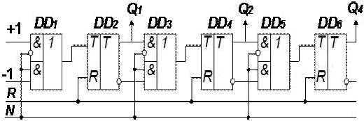 прямого и инверсного выходов предыдущего, получается схема реверсивного