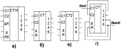 На рисунке 3.9, г показано преобразование счётчика, имеющего коэффициент счёта KСЧ=12, в десятичный.