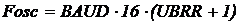 Значение UBRR берётся из таблицы 3.1. Интерфейс UART имеет 2 типа скорости обмена в асинхронном режиме - это нормальный режим и режим двойной скорости (за это отвечает бит U2X регистра UCSRA). Множитель «16» в формуле (1) берётся исходя из того, что был выбран нормальный режим работы UART.
