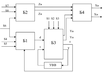 В рассматриваемой схеме управления присутствует большое количество входных сигналов, что существенно затрудняет её формальное описание и синтез. Так как сигналы разделены по функциональному значению, целесообразно для упрощения проектирования разделить схему на отдельные функциональные блоки и наметить обмен информации между ними.