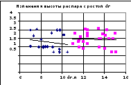 Высота распара для рассматриваемой выборки профилей практически не зависит от диаметра горна и полезного объема печи и изменяется