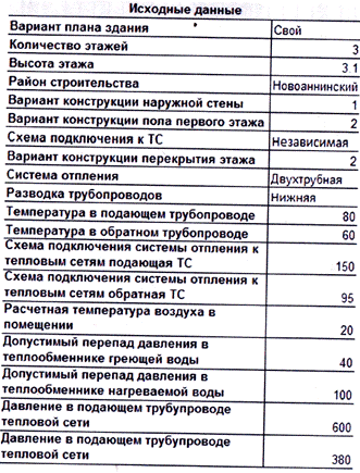 2. Исходные данные: