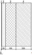 Схема конструкции ограждающей конструкции показана на рисунке (слева направо от - к +)