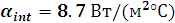 коэффициент теплоотдачи внутренней поверхности ограждающих конструкций, Вт/(м2°С),