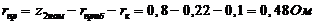 Сопротивление контактов rк = 0,1Ом при общем числе приборов более трех;