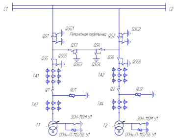 Выбранный вариант структурной схемы ПС должен быть подробно разработан для обоих напряжений (ВН и НН). Подробная разработка приводит к составлению принципиальной электрической схемы главных цепей подстанции, называемой в дальнейшем «главной схемой».