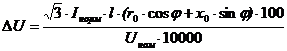 - удельное активное сопротивление кабеля; [8]=0,161 Ом/км - удельное