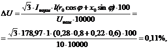 где r0 =0,28 Ом/км - удельное активное сопротивление кабеля; [8]