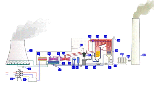 Рисунок 1. - Схема конденсационной электростанции на угольном топливе: 1-градирня <#"810485.files/image002.gif">