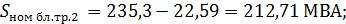 .3 Выбор блочных трансформаторов