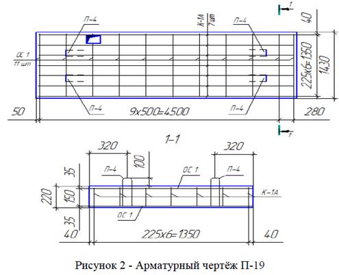 Таблица 2 - Спецификация арматуры на плиту П-19