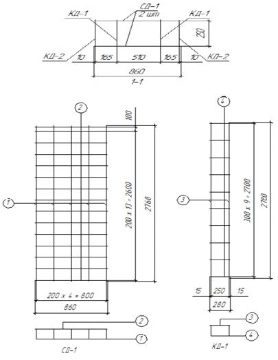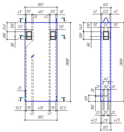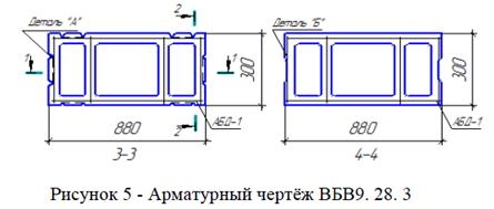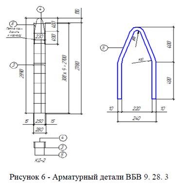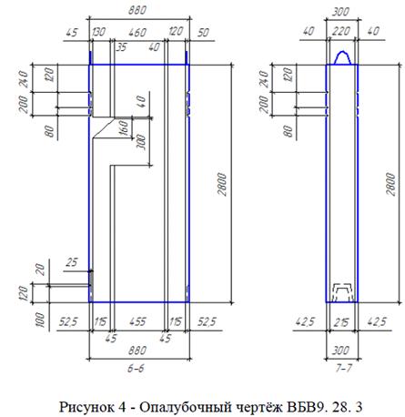 Внешний вид и армирование внутреннего вентиляционного блока ВБВ 9. 28. 3 смотри рисунки 4 - 6.