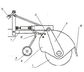 Кожух барабана на продольных уголках имеет кронштейн для шарнирного соединения фрезерного барабана к раме подъемника. Такое крепление кожуха позволяет барабану копировать рельеф поля в поперечном направлении.