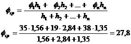 фундамента АБВГ. Определим усредненное значение угла внутреннего трения