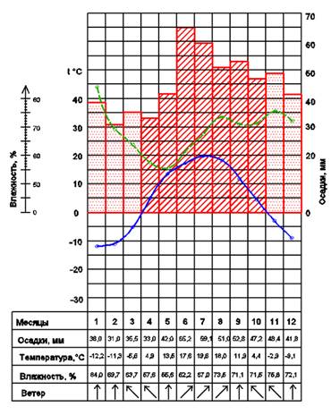 континентальный. Глубина промерзания составляет 150 см. Дорожно-климатическая
