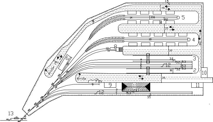Пример схемы внешней планировки ГР приведен на рисунке 6.11. На схеме показывается нумерация путей и стрелочных переводов.