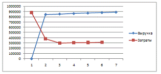 Наибольший интерес для руководителей организации представляет определение уровня безубыточности, т.е. объема производства, который позволит покрыть все затраты и начать получать прибыль. Аналитическое рассмотрение уровня безубыточно многопродуктового производства, приведенное выше, не дает очевидного ответа на вопрос о том, сколько же надо произвести, чтобы покрыть все затраты. Гораздо легче это понять, используя графическое представление данных.