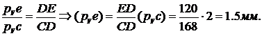 Решаем систему графически. Для этого из точки e проводим прямую, перпендикулярную звену EF, а с полюса прямую, параллельно движению ползуна. В месте пересечения получаем точку f.