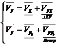 Запишем векторные уравнения распределения скоростей, последовательно решая которые построим план скоростей.