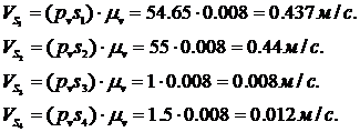 Определив значения относительных скоростей звеньев, находим величины их угловых скоростей:
