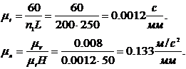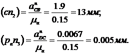 переводим величины нормальных ускорений звеньев в миллиметры с помощью
