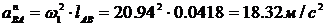 ускорения точки A и ускорения относительного вращательного движения точки B