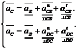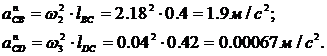 Вектор ускорения точки C, принадлежащей шатуну 2, представляет собой геометрическую сумму векторов ускорения точки B и векторов нормального и тангенциального ускорений относительного вращательного движения точки C вокруг точки B .