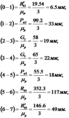 Принимаем масштабный коэффициент mР =1.3 Н/мм и определяем длинны векторов реакций