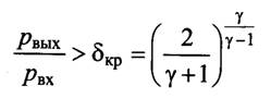 имеет место докритическое истечение газа. При pвых/pвх ≤ δ - истечение закритическое.