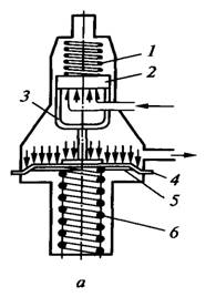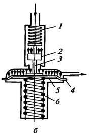 хода 1 - запорная пружина; 2 - клапан; 3 - толкатель; 4 - мембрана; 5 - диск; 6
