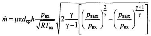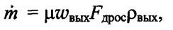 где ωвых и рвых - соответственно скорость истечения и плотность газа на выходе из дросселирующего сечения; μ - коэффициент расхода.