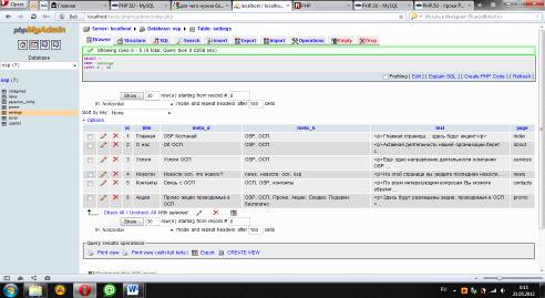 В соответствии с принципом строительства вышеуказанных страниц имеют одинаковую структуру и запросы для доступа к базе данных, что и предыдущий веб-странице. Единственное, что будет отличать их - это таблицы в OSP базы данных (таблица «Новости» и «промо»). Данные таблицы содержат следующие поля: