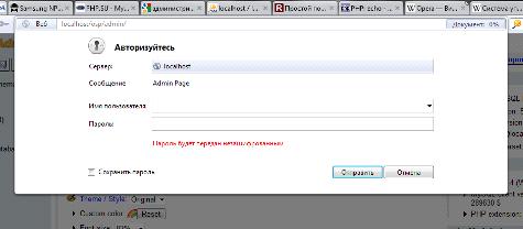 Рисунок 11. Авторизация входящего в административную часть