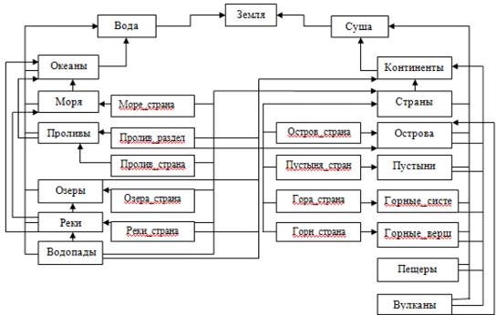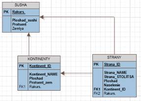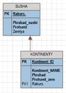 Таблица Страны также связывается с таблицей Суша, так как он является частью