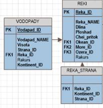 В природе водопад это, падение воды <https://ru.wikipedia.org/wiki/%D0%92%D0%BE%D0%B4%D0%B0> в реке <https://ru.wikipedia.org/wiki/%D0%A0%D0%B5%D0%BA%D0%B0> с уступа, пересекающего речное русло <https://ru.wikipedia.org/wiki/%D0%A0%D0%B5%D1%87%D0%BD%D0%BE%D0%B5_%D1%80%D1%83%D1%81%D0%BB%D0%BE>. В отличие от речных порогов <https://ru.wikipedia.org/wiki/%D0%A0%D0%B5%D1%87%D0%BD%D0%BE%D0%B9_%D0%BF%D0%BE%D1%80%D0%BE%D0%B3>, для водопадов характерны резкий перепад высоты речного дна и отвесность падения. На основе Бизнес-правила 6 мы получаем сегмент ER-Модели представленный на рисунке 7.